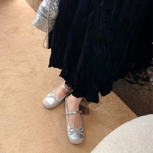 LUXINYU Women Fashion Bowknot Mules Mary Jane Flats Hidden Heel Slippers Pu Leather Ankle Strap Shoes 1