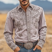 More information about Men's Intricate Floral Flowers Shirt Western Shirt Cowboy Shirt Long Sleeve Vintage Retro Outdoor Vacation Spring Fall Turndown 3D Print Linen Like Shirt Purple