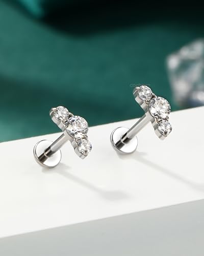 COCHARM G23 Titanium Tragus Helix Cartilage Earring Stud Flat Back Surgical Steel Helix Cartilage Piercing Jewelry 16g Threadless Climb Conch Jewelry Push Pin Silver Lobe Stud 6mm 8mm 5