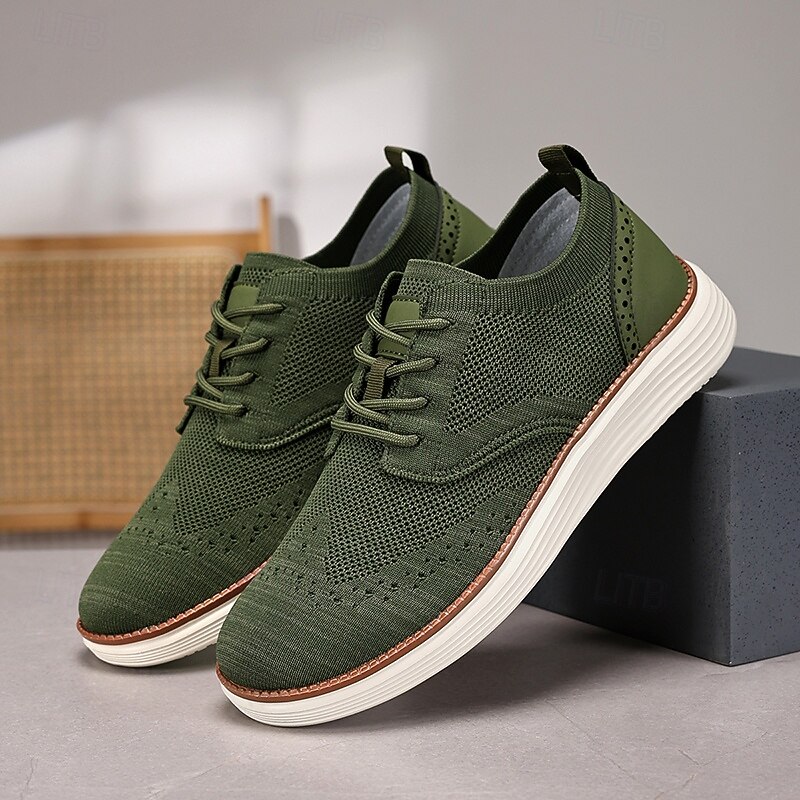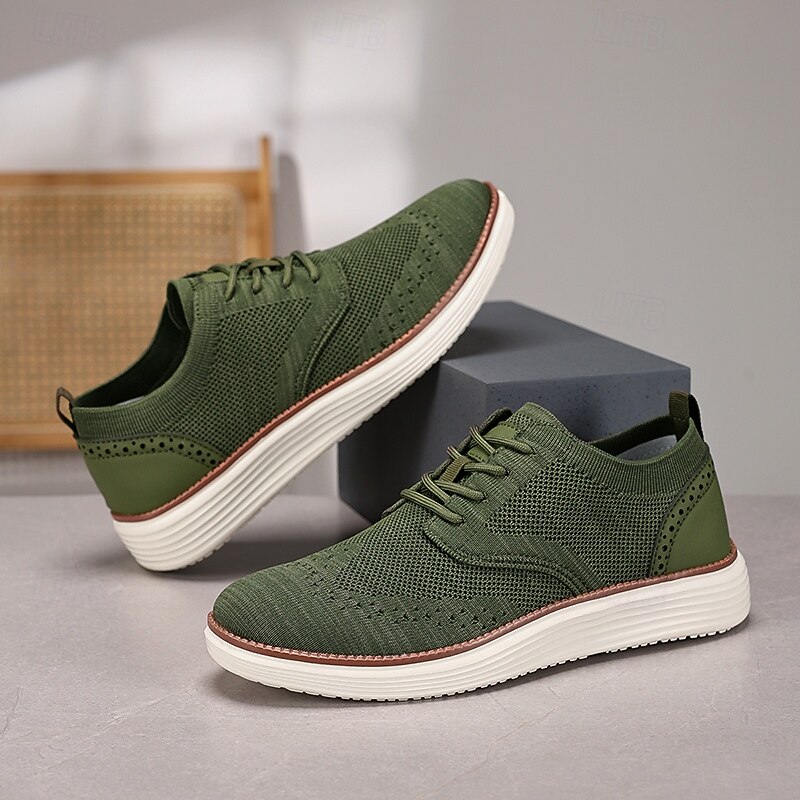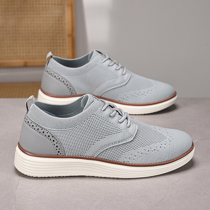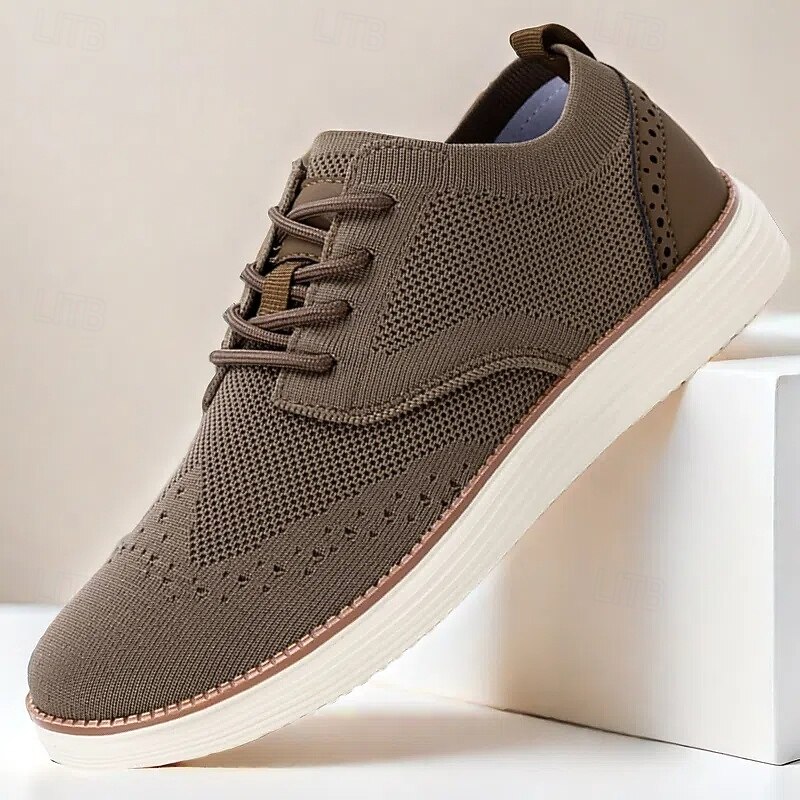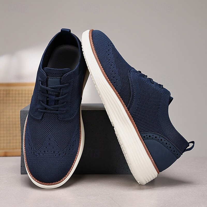 HOT ! Men's Breathable Knit Brogue Sneakers - Casual Lace-Up Lightweight Shoes for Daily Wear & Walking