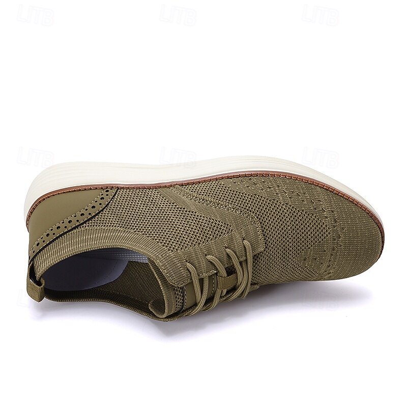 Men's Breathable Knit Brogue Sneakers - Casual Lace-Up Lightweight Shoes for Daily Wear & Walking 6