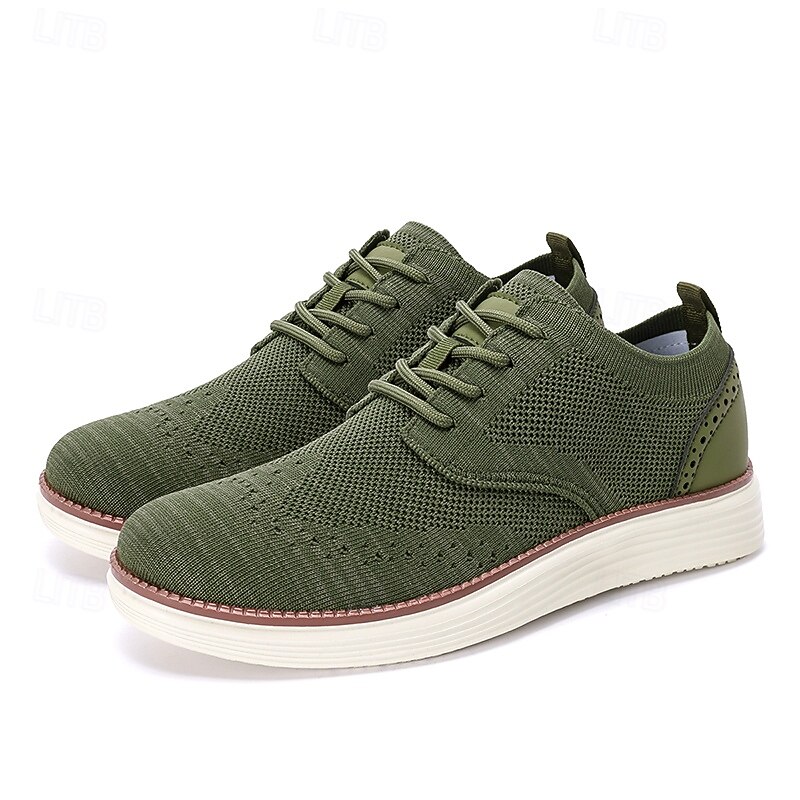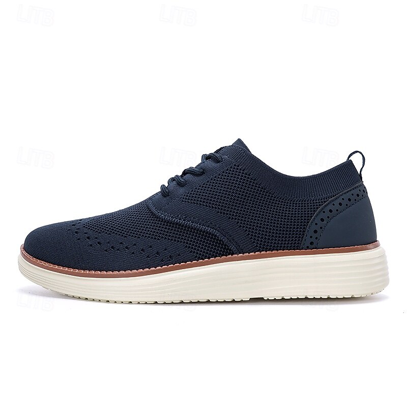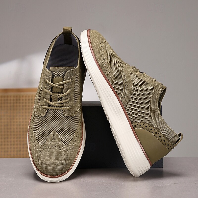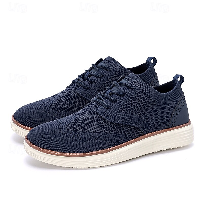 Men's Breathable Knit Brogue Sneakers - Casual Lace-Up Lightweight Shoes for Daily Wear & Walking 36