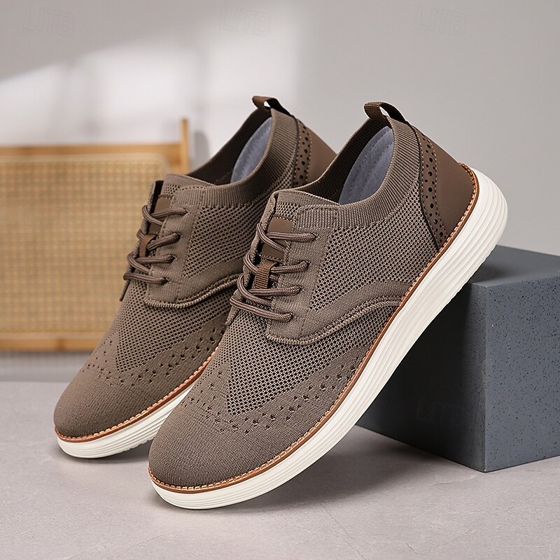 Men's Breathable Knit Brogue Sneakers - Casual Lace-Up Lightweight Shoes for Daily Wear & Walking 35