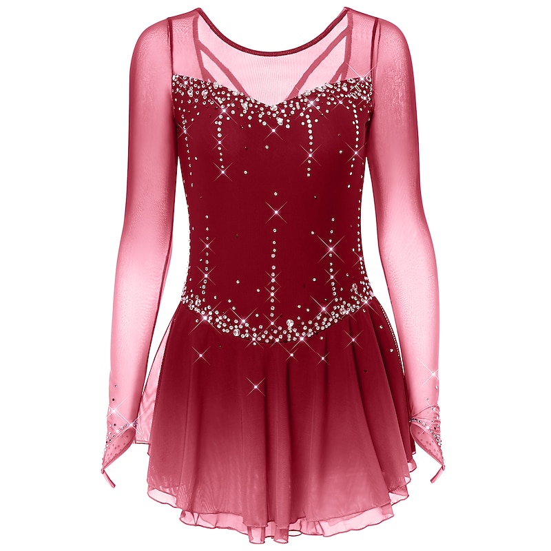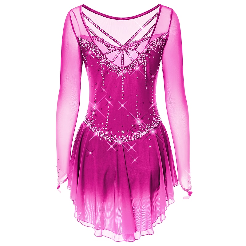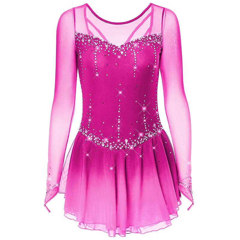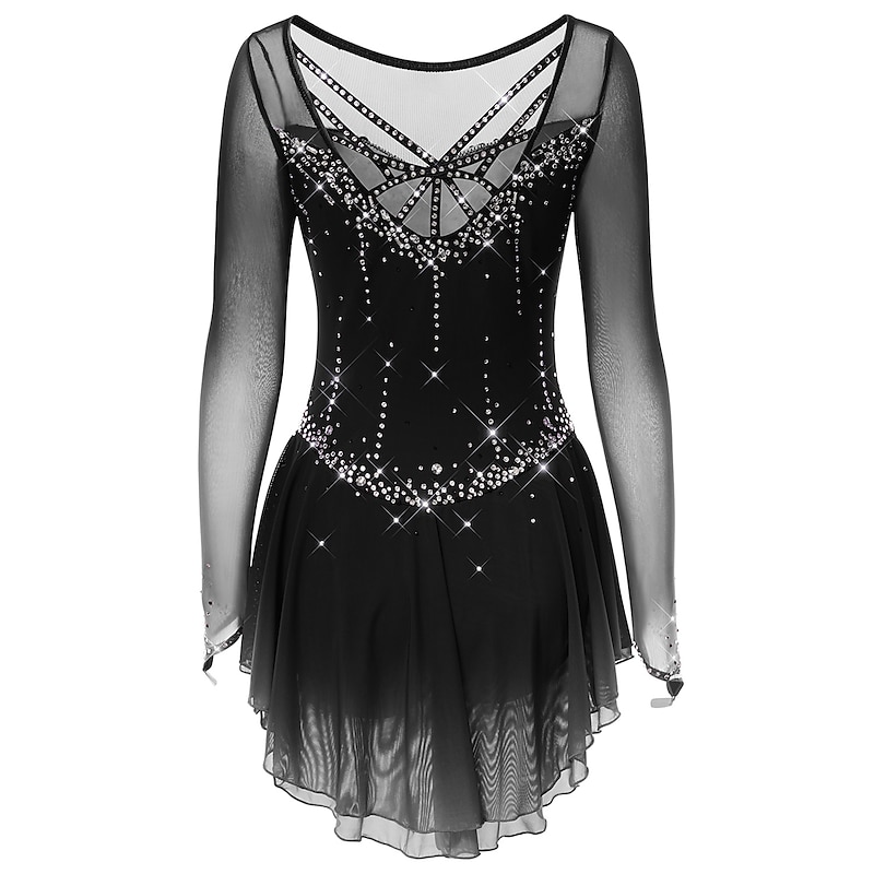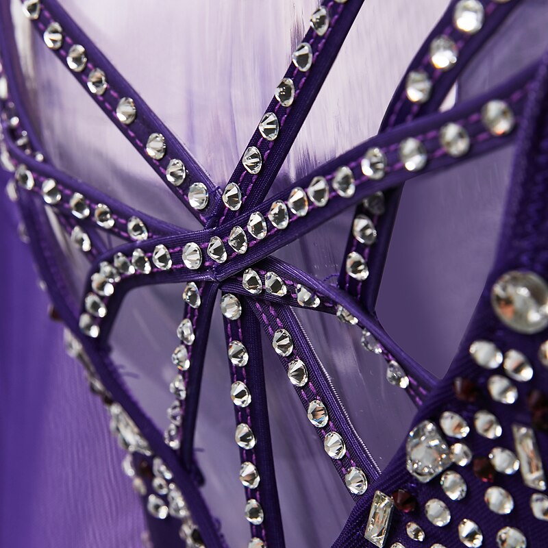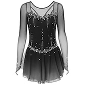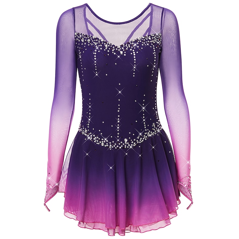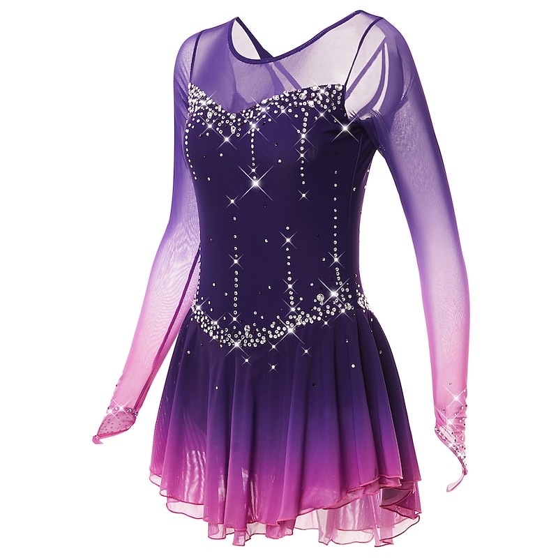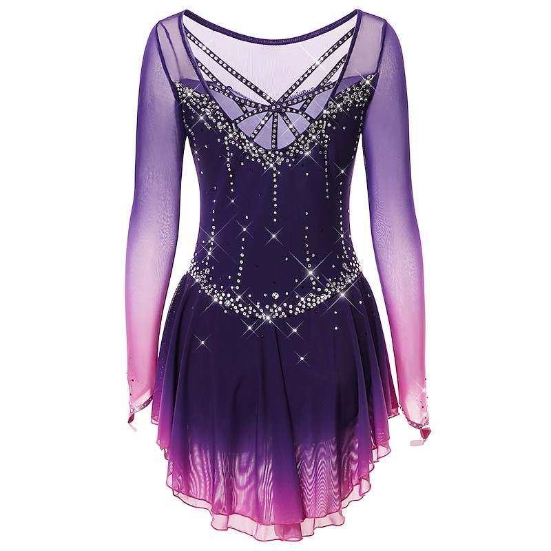 More information about Figure Skating Dress Women's Girls' Ice Skating Dress Dark-Gray Violet Purple Mesh Spandex High Elasticity Training Practice Competition Skating Wear Handmade Classic Crystal / Rhinestone Long Sleeve