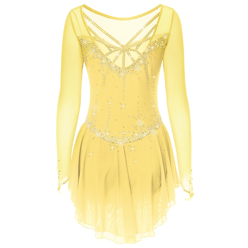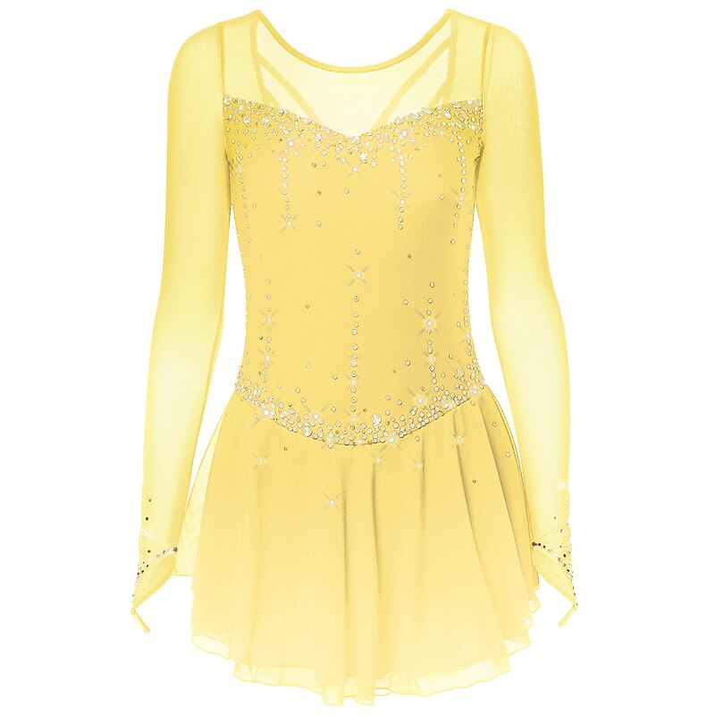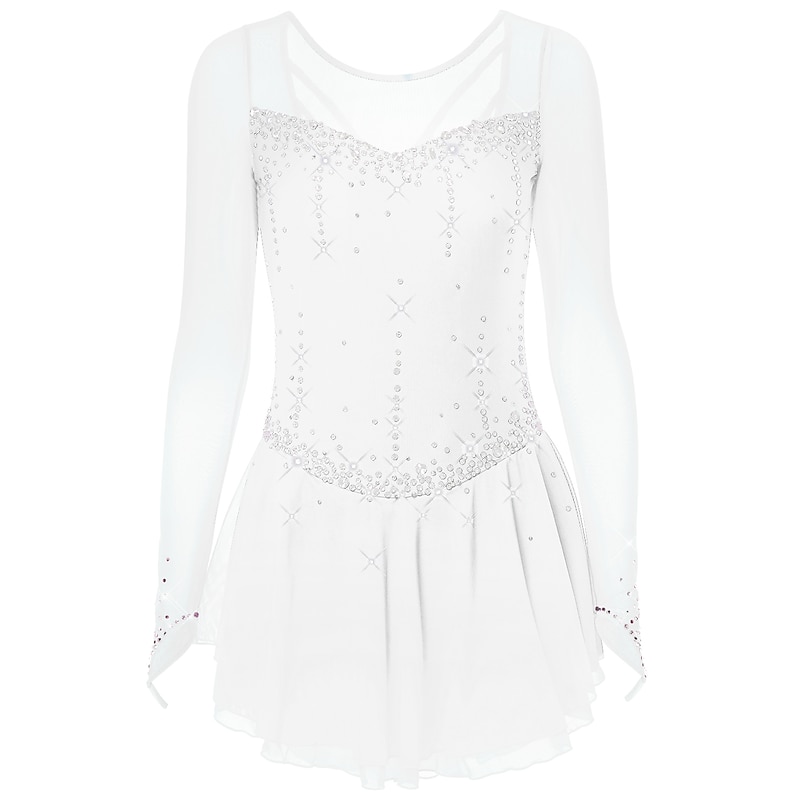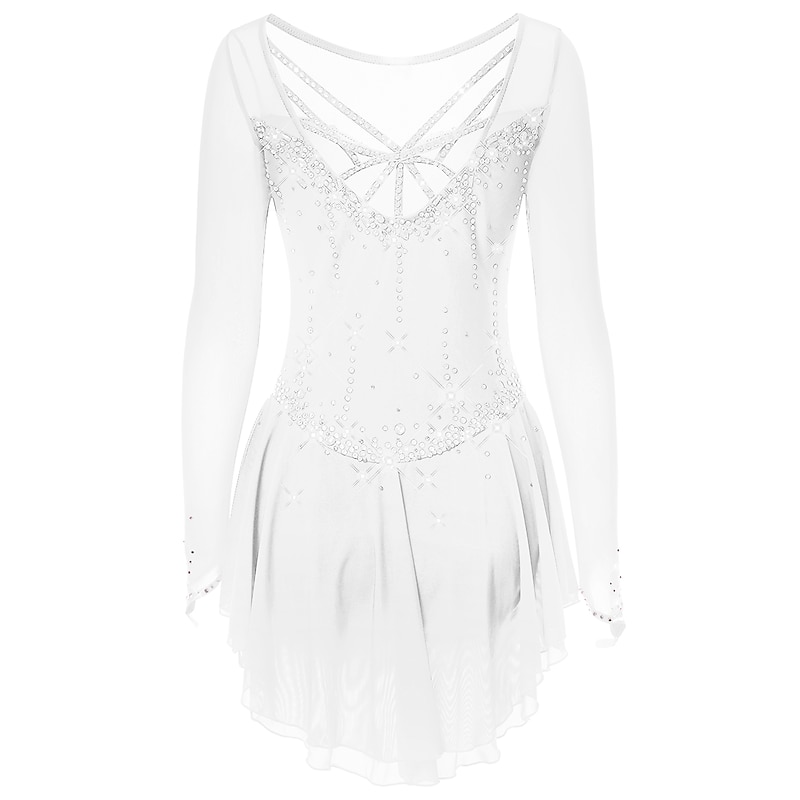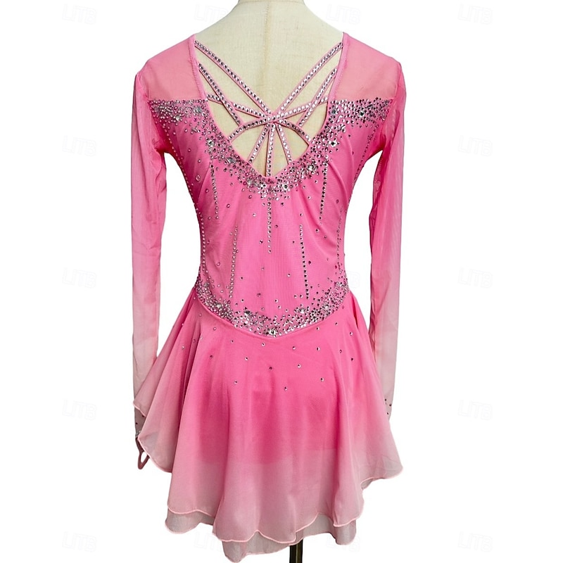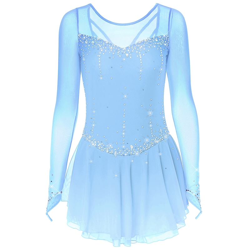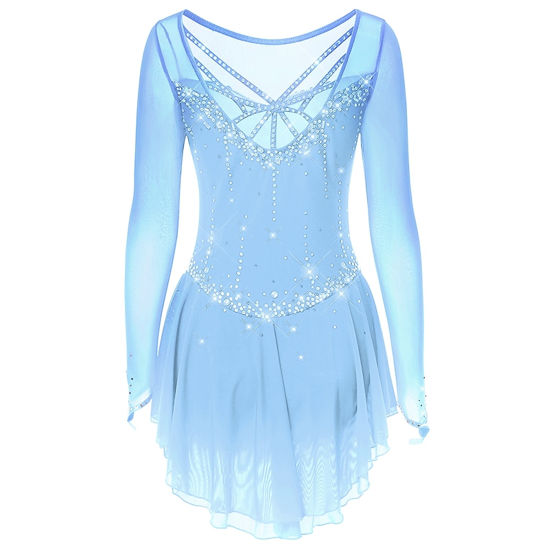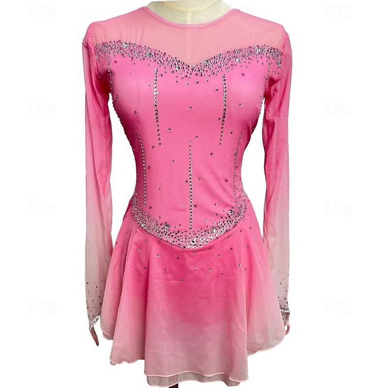 More information about Figure Skating Dress Women's Girls' Ice Skating Dress Dark-Gray Violet Purple Mesh Spandex High Elasticity Training Practice Competition Skating Wear Handmade Classic Crystal / Rhinestone Long Sleeve