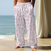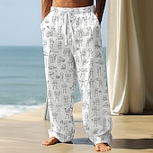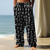 More information about Men's Trousers Baggy Pants Casual Pants Elastic Drawstring Waist Linen-Like Pants with Pockets People Stick Figure Full Length Outdoor Vacation Funny Black White Inelastic