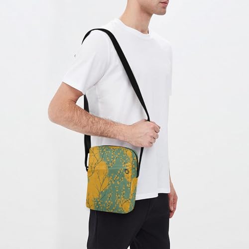 KLL Yellow Flowers Green Pattern men's messenger bag Vegan Leather Small Crossbody Bag Women Travel Shoulder Handbag For Travel 4