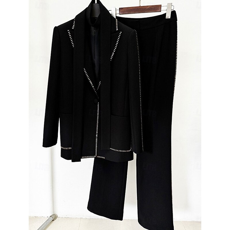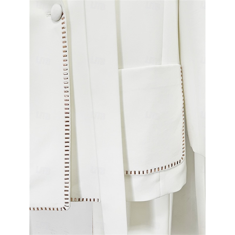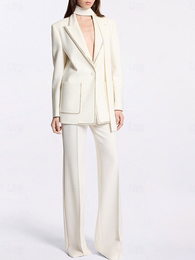 More information about Women's 2 Pieces Suits Formal Wedding Guest Formal Evening Cotton Blend Elegant Long Sleeve Floor Length Peak Lapel Single Breasted
