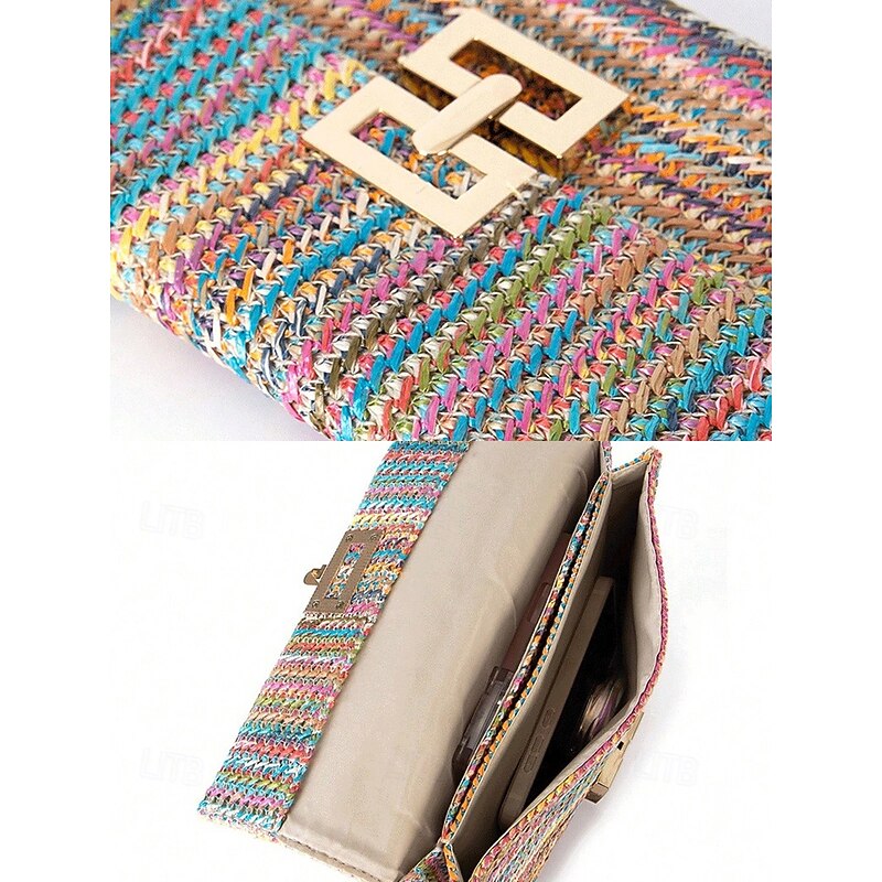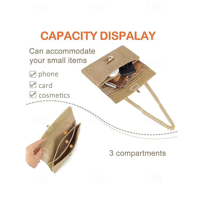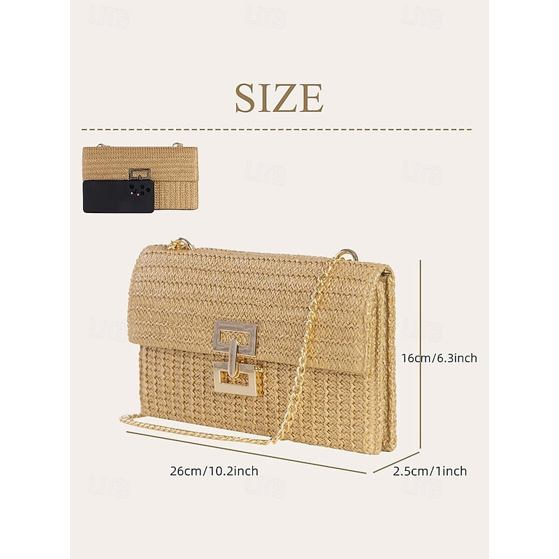 More information about Women's Woven Straw Shoulder Bag with Gold Chain Strap – Elegant Summer Clutch Purse for Beach, Vacation & Resort Outfits