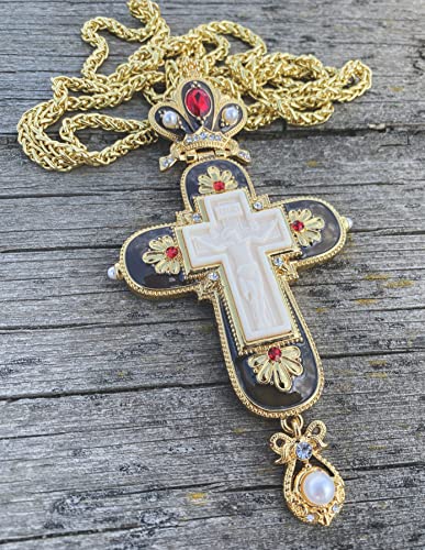 More information about Nazareth Store Jesus Pectoral Cross Black Enamel Crystallized Red Stones Christian Priest Bishop Crucifix Pendant Necklace 24" in Gift Box