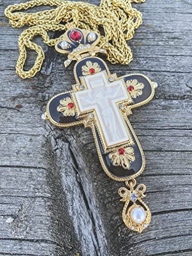 • Jesus Christ Pectoral Cross with black enamel red crystallized glass beads and peal imitation elements.