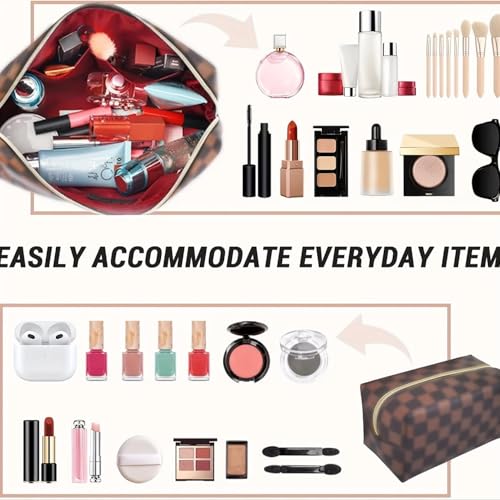 HOT ! Checkered Makeup Bag, Portable Leather Cosmetic Bag, 2 Pcs Waterproof Travel Toiletry Bag for Women
