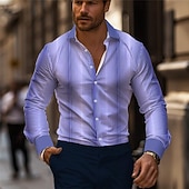 HOT ! Men's Dress Shirt Printed Shirts Striped Street Wear to work Purple Orange Long Sleeve Turndown Spring & Summer Clothing Apparel Print