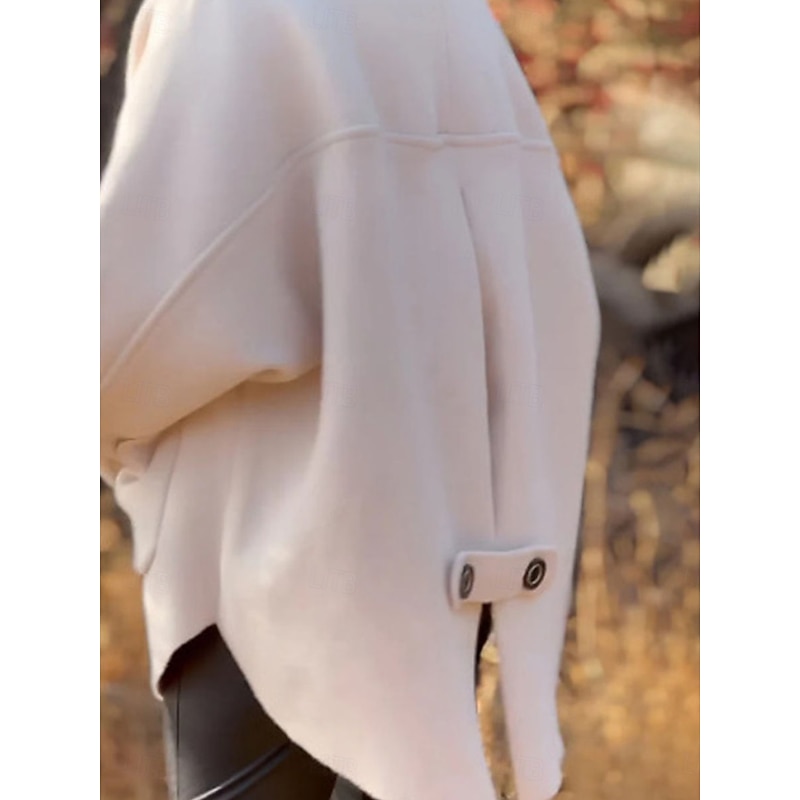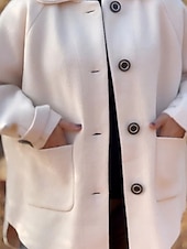This jacket stands out with its stylish single-breasted placket and prominent dark buttons, adding a touch of elegance and ease of wear. The turndown collar elegantly frames the neckline, while the two spacious front pockets offer both functionality and warmth for your hands. The sleeves are finished with adjustable strap details, echoing the button design for a modern flair and added functionality.