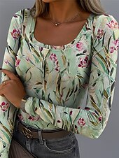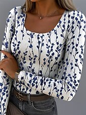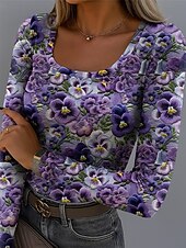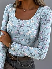 More information about Easter Women's T shirt Long Sleeve Ribbed Graphic Square Neck Long Sleeve Casual Floral Plants Vintage Stylish Regular Tops Daily Print White Blue Purple Green Light Blue Spring Fall Prefall