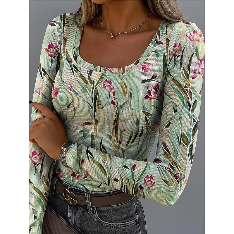 HOT ! Easter Women's T shirt Long Sleeve Ribbed Graphic Square Neck Long Sleeve Casual Floral Plants Vintage Stylish Regular Tops Daily Print White Blue Purple Green Light Blue Spring Fall Prefall