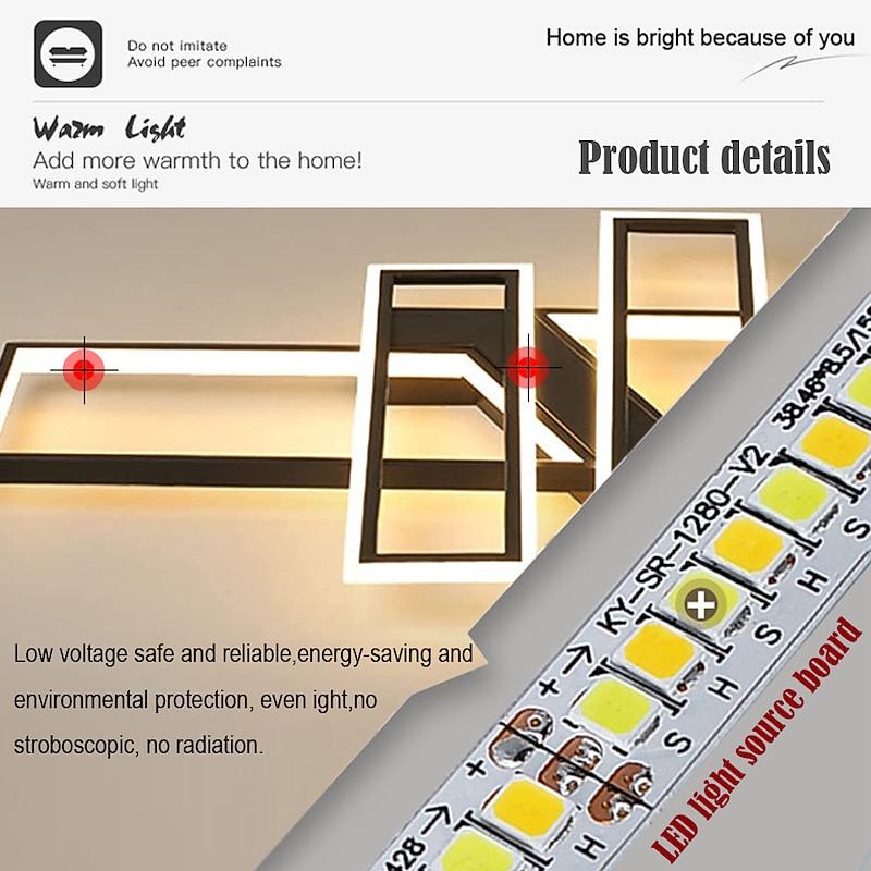 LED Ceiling Lights 4-Light 90/120cm Flush Mount Lights LED Modern Style Dining Room Bedroom Lights 110-240V ONLY DIMMABLE WITH REMOTE CONTROL 17