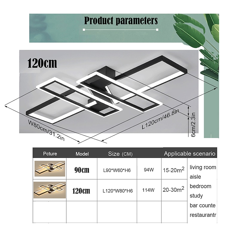 LED Ceiling Lights 4-Light 90/120cm Flush Mount Lights LED Modern Style Dining Room Bedroom Lights 110-240V ONLY DIMMABLE WITH REMOTE CONTROL 11