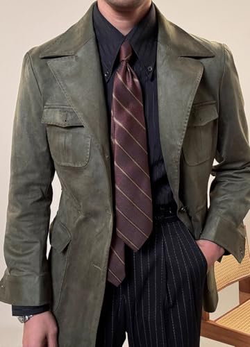 • 【Style Features】Classic slim fit mens suede material jacket, displaying retro & vintage style, gentlemanly manner. Paired with sweaters and shirts, warm clothing creates a warm skin feel.