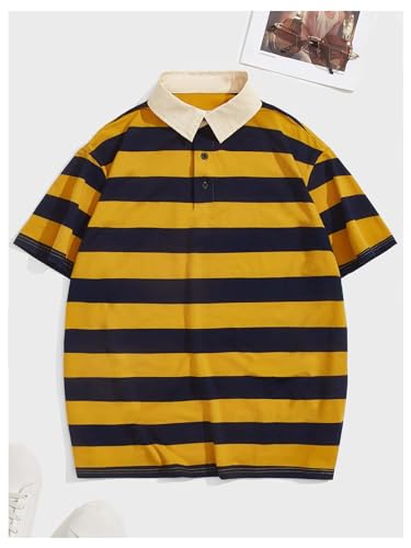 More information about Verdusa Men's Striped Button Front Casual Shirt Collared Short Sleeve Summer Tops