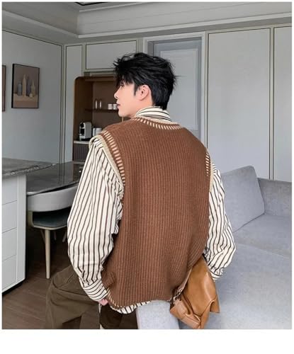 Men's Knitted Sweater Vest Business Casual V-Neck Loose Pullover Outwear Tops Waistcoat 6