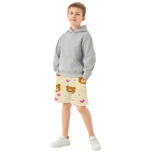 J JOYSAY Bear Daisies Hearts Beige Boys Athletic Shorts Kids Youth Casual Shotrs with Elastic Waistband Pockets 6