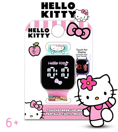 HOT ! Hello Kitty Kids Touchscreen LED Watch with Sanrio Character Artwork and Town Scene Strap, Digital Display, Durable Silicone Band, Ages 6+, Fits Wrists 5.5"–8"