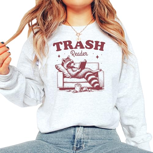 HOT ! Trash Reader Sweatshirt - Funny Trendy Vintage Raccoon Book Lover Shirt - Sarcastic Reading Romance Novel Bookworm Pullover - Unisex Graphic Crewneck Sweatshirt Sand