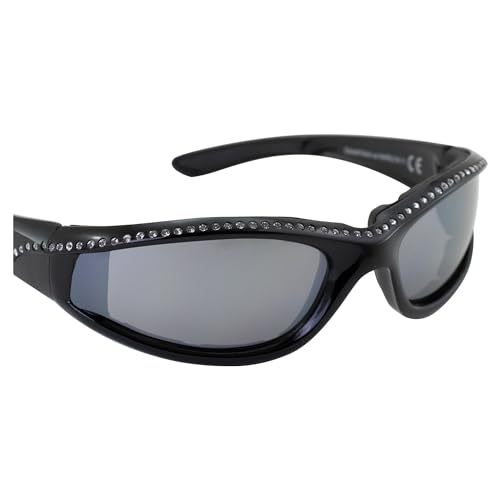 More information about Global Vision Eyewear Marilyn 11 Women's Padded Bling Black Motorcycle Sunglasses Flash Mirror Lenses