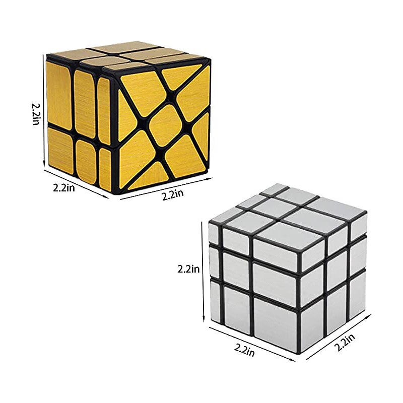 HOT ! Mirror Speed Cube Set Magic Cube Pack of 2 Dysmorphism 3x3x3 Mirror Golden Wheel Cube and Mirror Silver Cube Twist Speed Cube Bundle Puzzle Games Toy for Boy and Girl and Adults