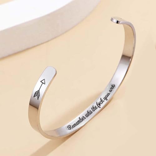 HOT ! Remember Who The F You Are Motivational Color Bangle, Stainless Steel Engraved Inspirational Message Fashion Cuff Bracelet Personalized Opening Adjustable Bracelet Jewelry Gift for Women