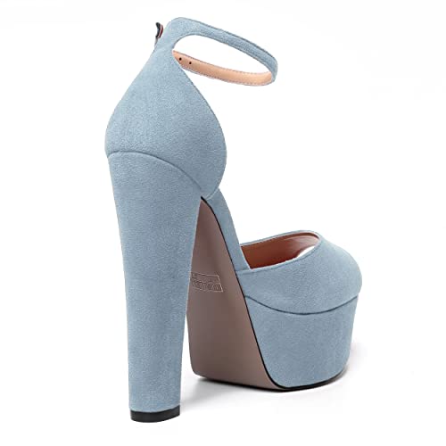 WAYDERNS Womens Fashion Buckle Suede Solid Party Platform Ankle Strap Peep Toe Block High Heel Pumps Shoes 6 Inch 5