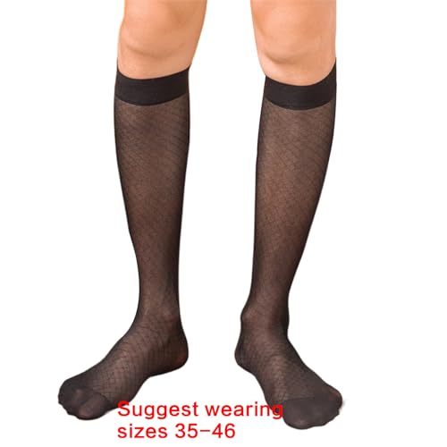 More information about Elegant Mens Sheer Pattern Dress Socks See Through Nylon Business Formal Wear Thin Long Tube Over The Calf Socks Men's Diamond mesh mid-Length Stockings