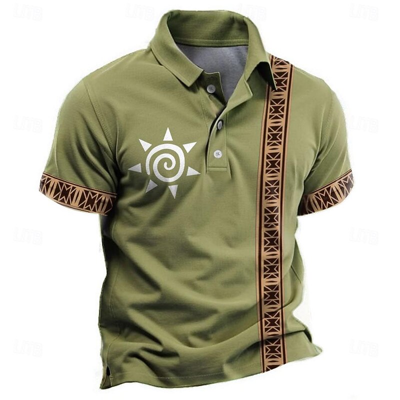 More information about Men's Tribal Polo Shirts Golf Shirt Short Sleeve Polo Shirts Collared Shirts Vacation Wear Party Outfits Buttons 3D Print Summer Spring Black Green Khaki