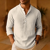 More information about Men's Shirt Linen Shirt Popover Shirt Casual Shirt Cotton Shirt Plain Vacation Hawaiian Black White Pink Orange Long Sleeve Band Collar Spring Fall Clothing Apparel