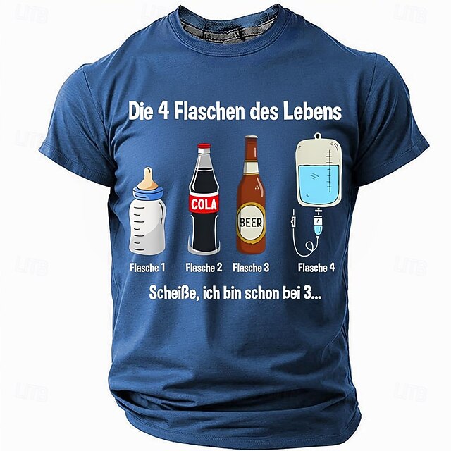 HOT ! Men's Funny Short Sleeve Graphic Tee: The 4 Bottles of Life Beer Humor Lifestyle