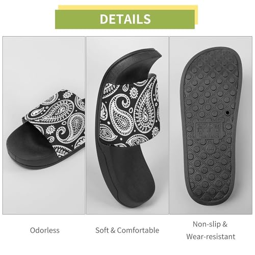 More information about Black White Bandana Paisley House Slippers for Women Men Shower Slides Bathroom Sandals