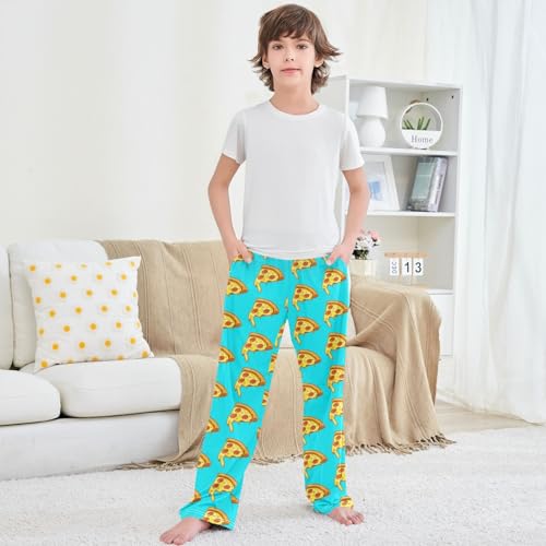 Boy's Pants Pizza Pattern Blue Jogger Pants Elastic Waist Long Bottoms Trousers with Pockets 6-14 Years 1