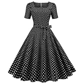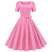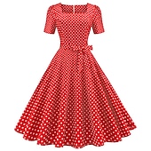 More information about Polka Dots 1950s Grease Outfits Cocktail Dress Dress Rockabilly Flare Dress Polka Dot Square Neck Fancy Dress Women's Christmas Halloween Carnival Vacation Homecoming Prom Adults' Dress