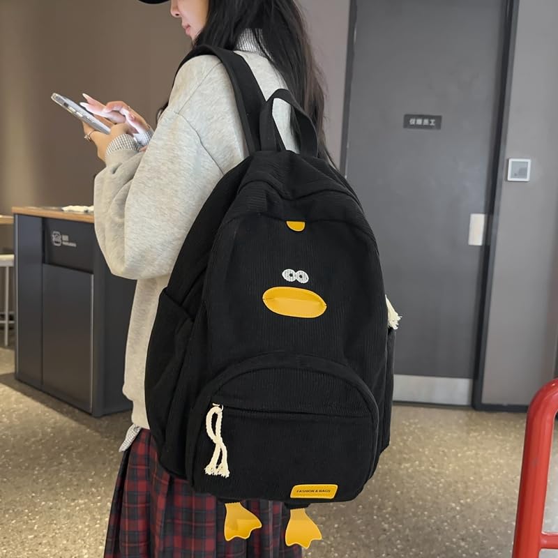 HOT ! Cartoon Duck Backpack Aesthetic Backpack Bookbag for (Black)