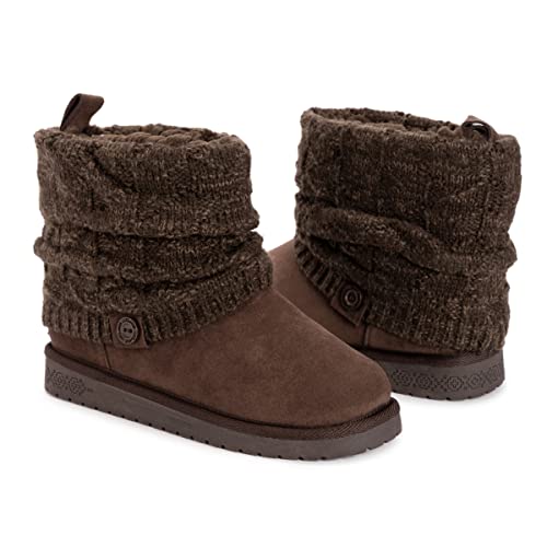 • 100% Polyester Insole, 100% Polyester Faux Suede Upper, 100% Acrylic Knit, 100% Polyester Faux Shearling Lining