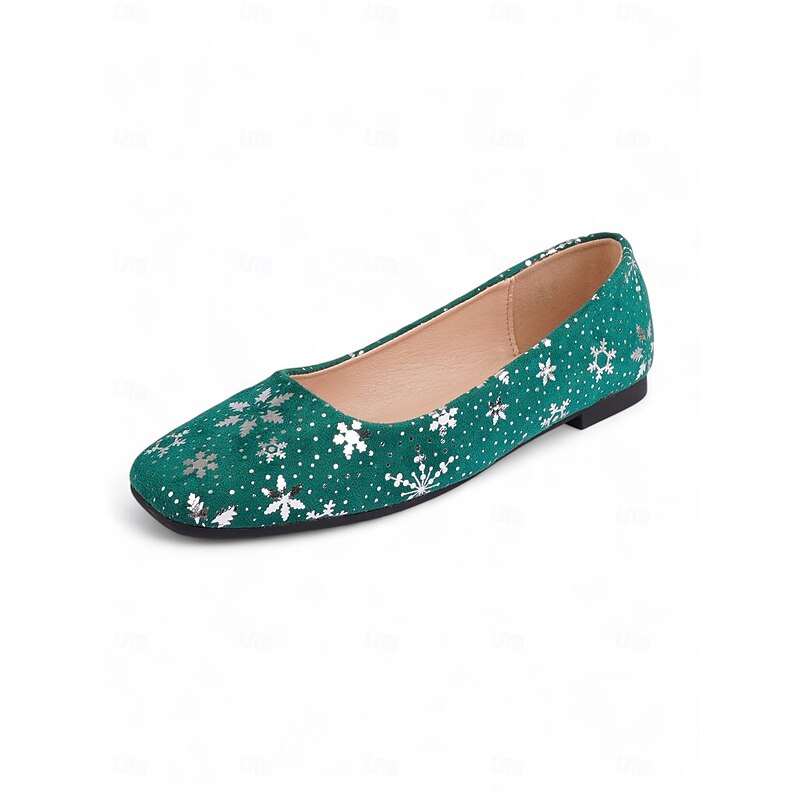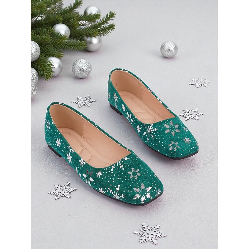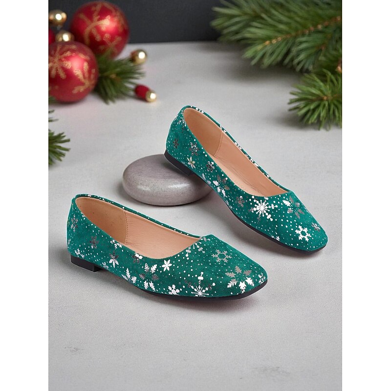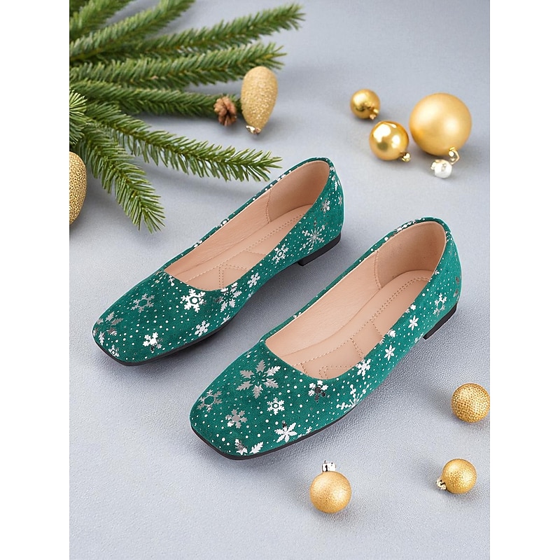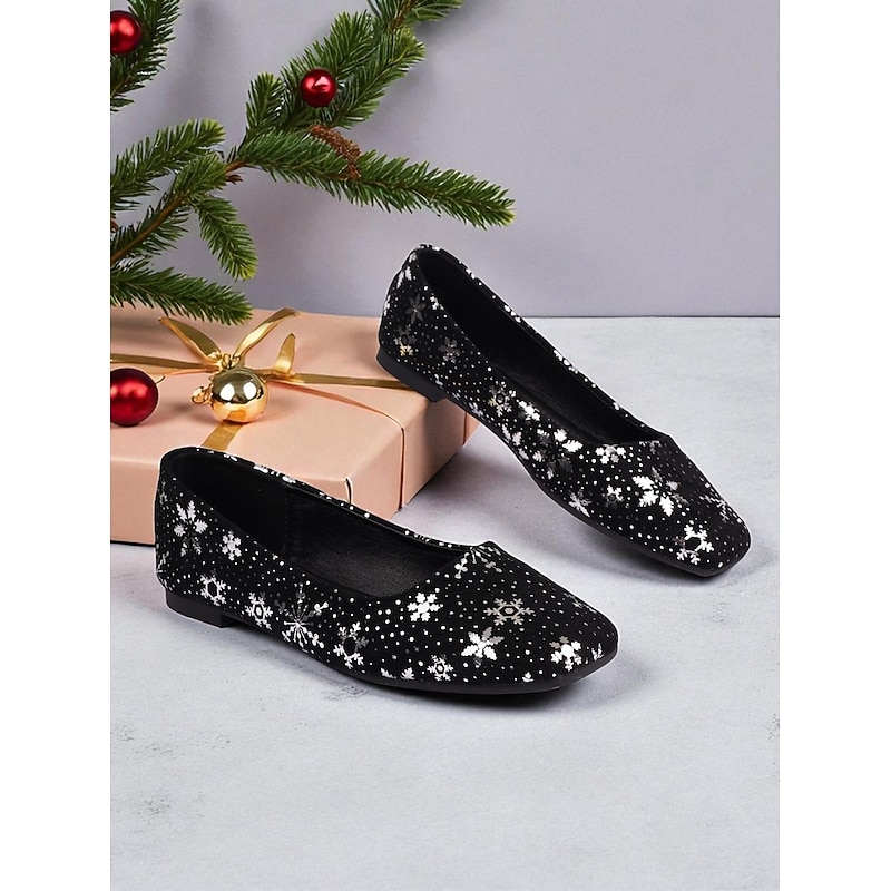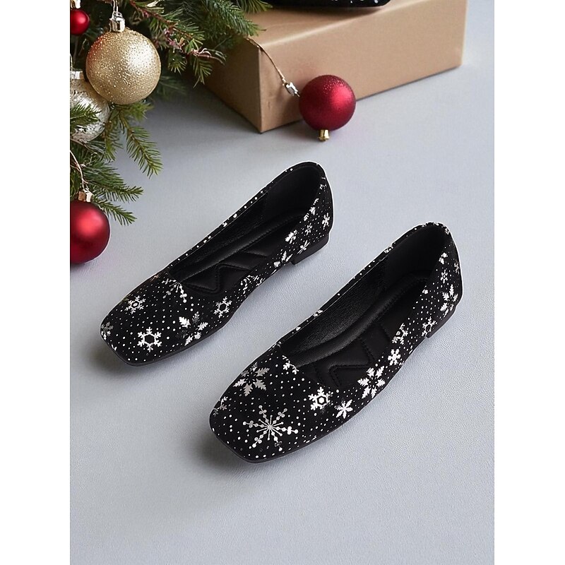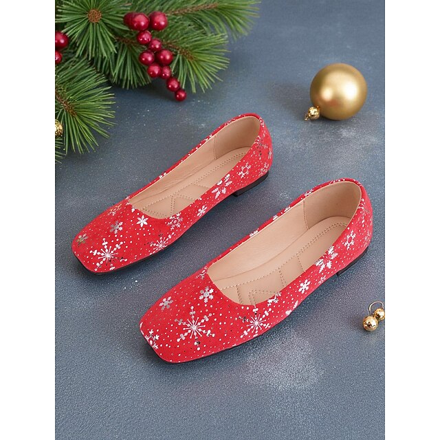 HOT ! Women's Red Christmas Flats with Snowflake Print – Festive Holiday Party and Everyday Casual Shoes