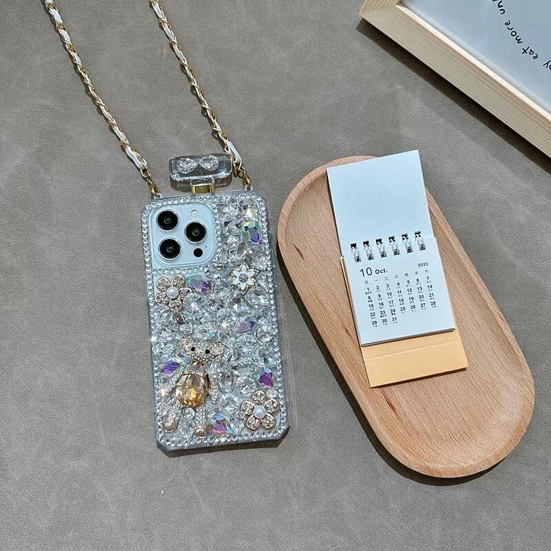 HOT ! Phone Case For iPhone 16 15 14 Pro Max Plus 13 12 11 Pro Max Mini Back Cover with Lanyard Non-Yellowing Bling Glitter Shiny Flower Floral TPU Rhinestone