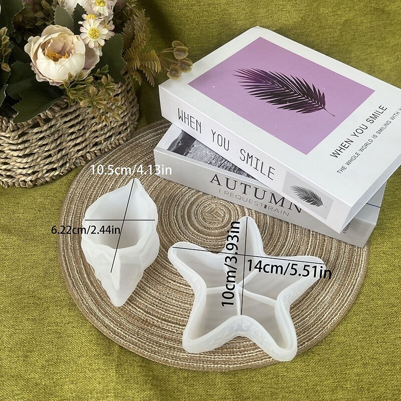 2PCS Silicone Mold Set for Resin and Concrete Casting - Shell and Sea Star Shapes Ideal for DIY Crafts 8