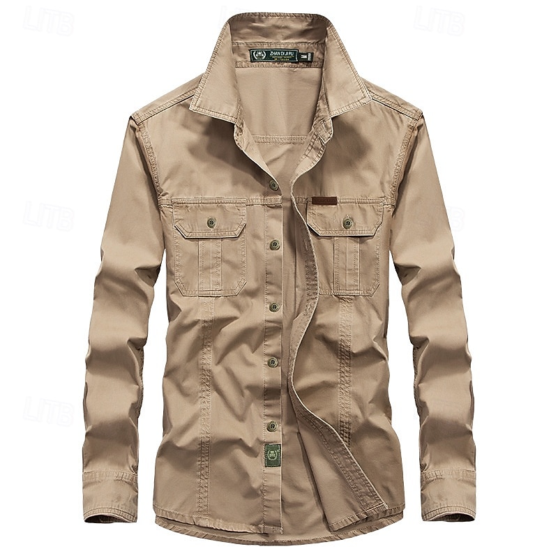 HOT ! Men's Shirt Summer Shirt Casual Shirt Button Up Shirt Cargo Shirt Black White Red Dark Navy khaki Long Sleeve Plain Shirt Collar Vacation Hawaiian Pocket Clothing Apparel 100% Cotton Fashion Casual
