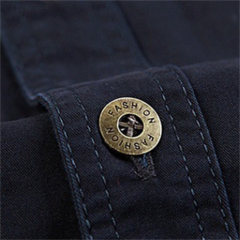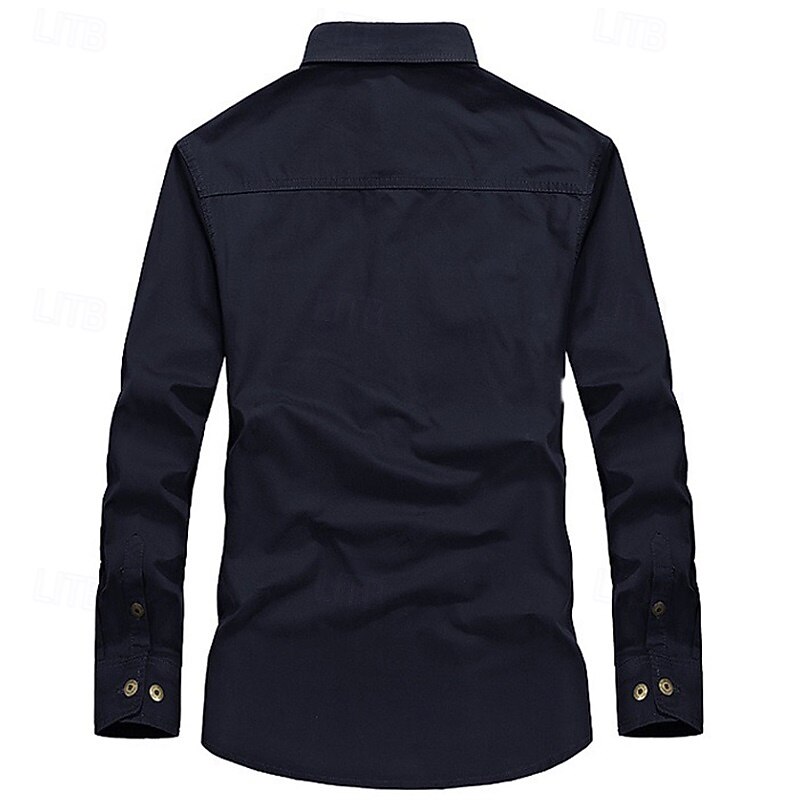More information about Men's Shirt Summer Shirt Casual Shirt Button Up Shirt Cargo Shirt Black White Red Dark Navy khaki Long Sleeve Plain Shirt Collar Vacation Hawaiian Pocket Clothing Apparel 100% Cotton Fashion Casual