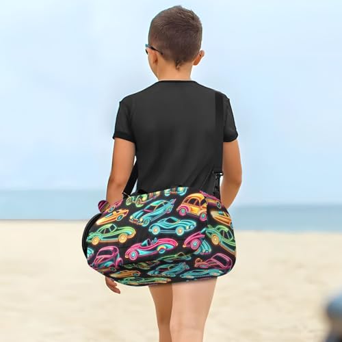 Neon Cars Duffle Bag for Girl, Sports Duffle Gym Bags with Shoe Compartment, Personalized Overnight Bag Travel Weekender for Kids 7