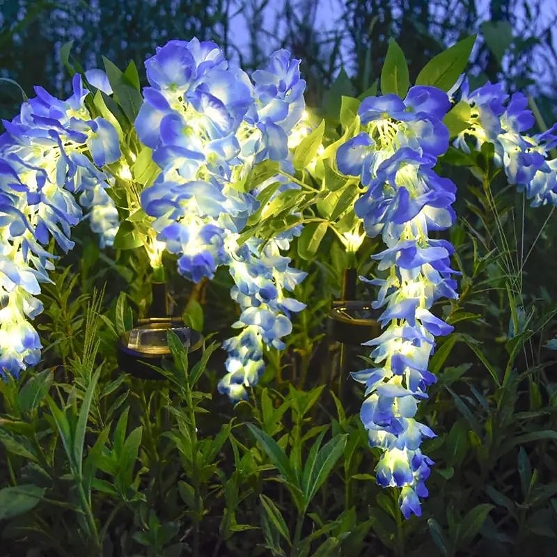 HOT ! 2 Pcs LED Solar Outdoor Lights Garden Light Wisteria Flower Patio Lights Waterproof LED Pathway Light Lawn Garden Courtyard Walkway Landscape Holiday Decoration