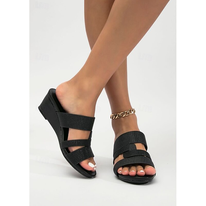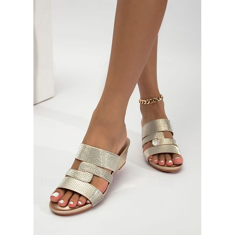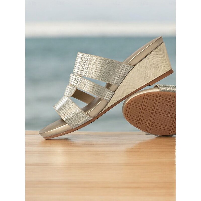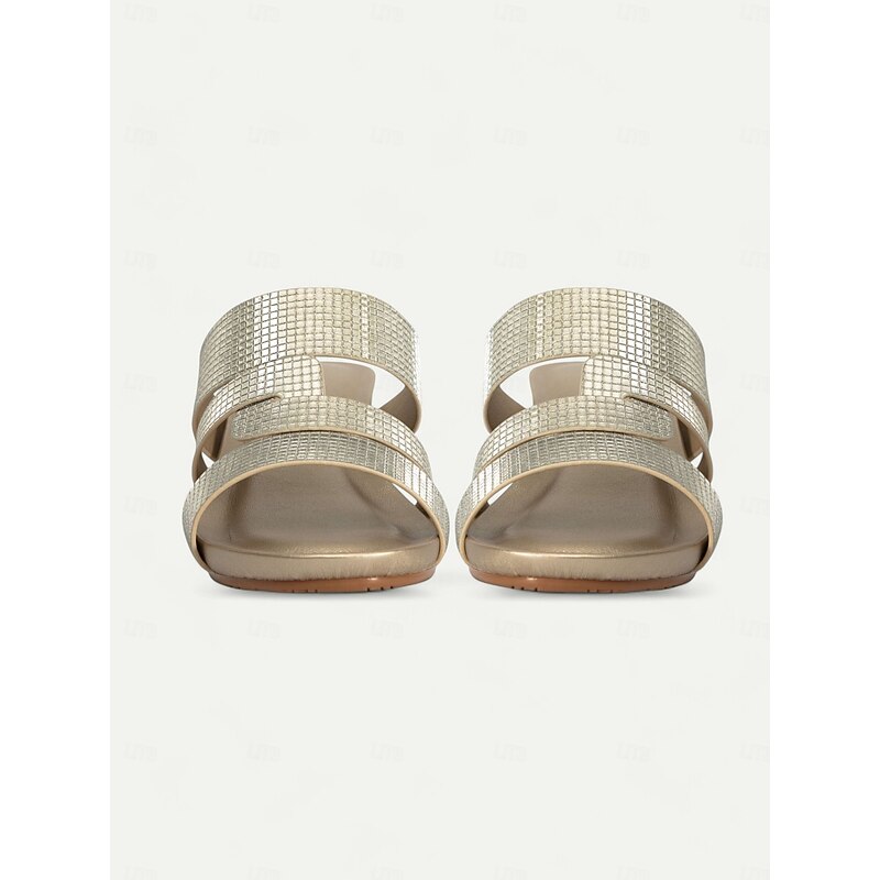 HOT ! Women's Metallic Slide Sandals with Textured Straps, Open-Toe Flat Shoes for Casual Summer Outings and Beach Wear
