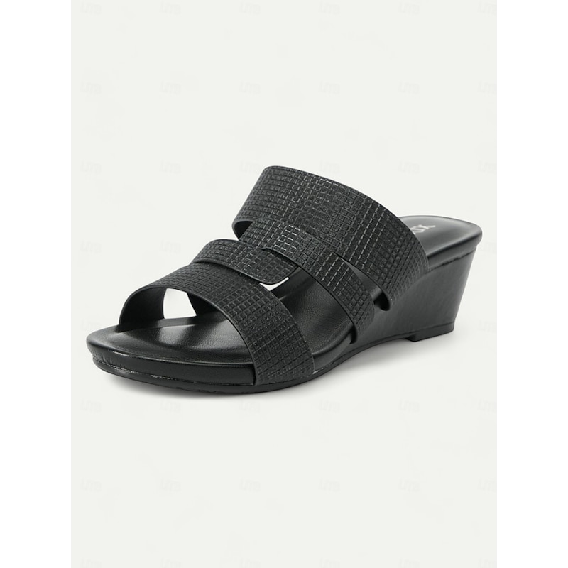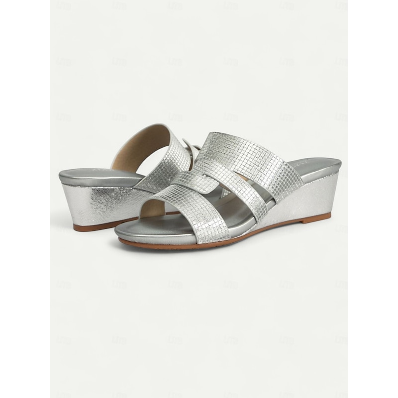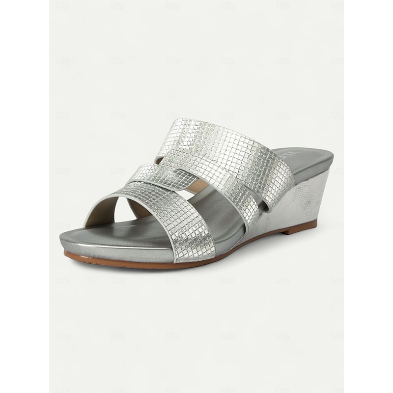 Women's Metallic Slide Sandals with Textured Straps, Open-Toe Flat Shoes for Casual Summer Outings and Beach Wear 24